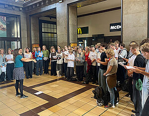 Musikeleverne prøvede akustikken af forskellige steder i byen, bla. med sang i banegårdshallen og på Århus Street Food. Indimellem var de til foredrag om musik og søvn.