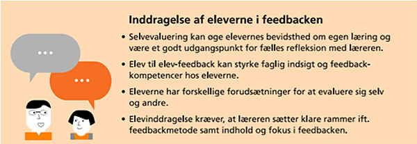 “Evaluering for læring og ikke evaluering af læring. Det er en proces, hvor læreren optager elevernes udsagn, diskuterer dem og giver dem retning, og hvor eleverne optager lærernes udsagn for at kunne evaluere deres faglige niveau i forhold til det niveau, som læreren lægger.” - TBS