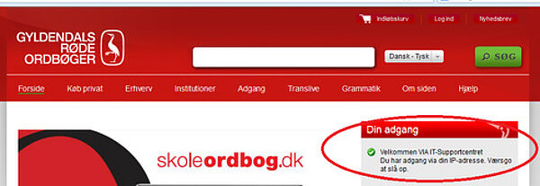 Man finder ordbøgerne på adressen ordbog.gyldendal.dk, og der er gratis adgang for alle, som har et brugernavn til skolen.