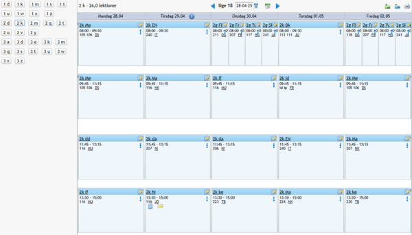 1. Lektionerne fordeles jævnt for hvert hold - dog så klassen ikke overskrider max i en uge.