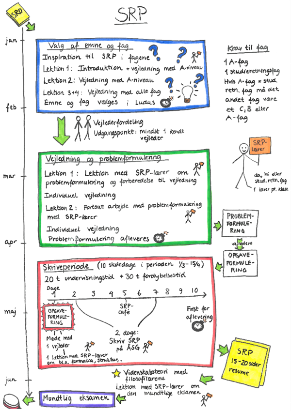 Studieretningsprojektet har et forløb, der starter i uge 2 og afsluttes med den mundtlige eksamen i eksamensperioden.