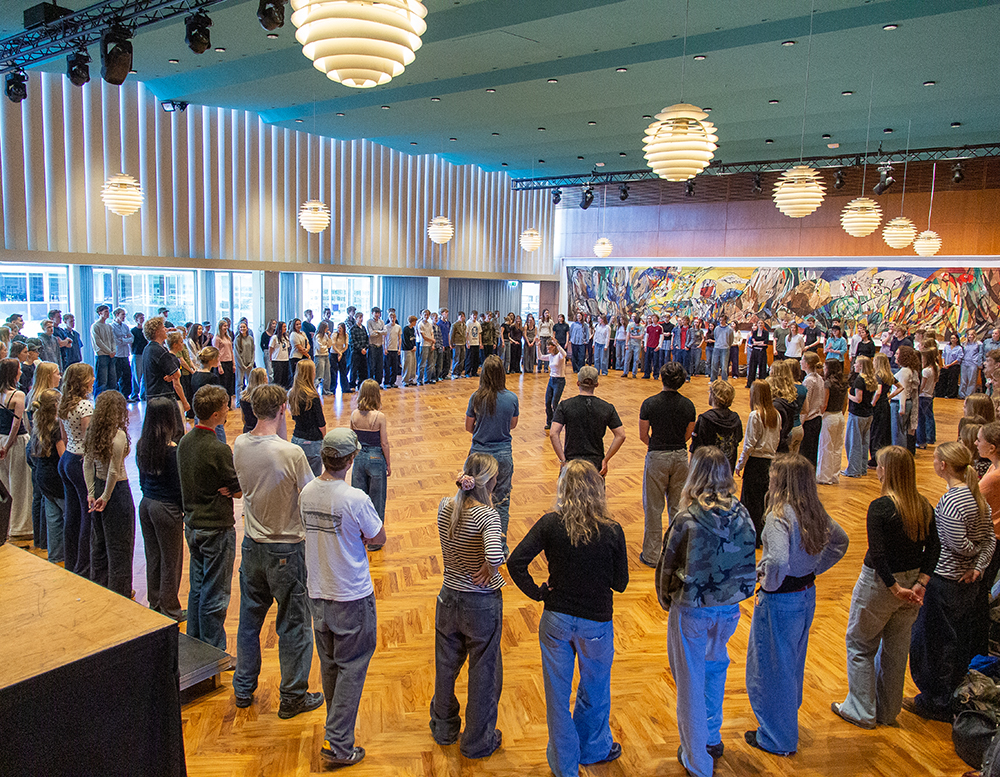 I denne uge har vi besøg af Aurehøj Gymnasiums kor, som tirsdag lavede en korworkshop i festsalen sammen med musikeleverne på ÅSG.